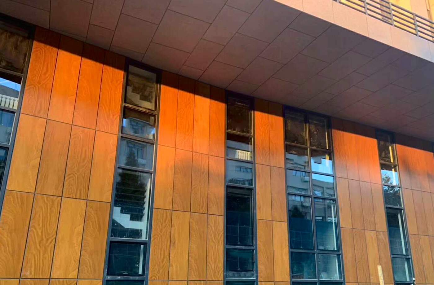 铝锥芯板作为主要的装饰材料,具有A级防火、平整度好、抗风压强、超耐候性、节能环保等特性,非常适合用于文物保护类建筑的外墙装饰。其仿木纹设计不仅美观,还能在一定程度上模拟竹简的质感。